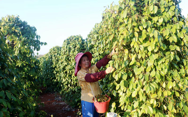 農(nóng)戶正在田間采收胡椒。海墾熱作集團供圖