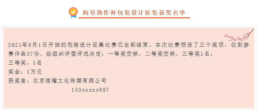 注:海墾熱作大禮包獲獎?wù)邔⒁脏]寄方式寄出,獲獎?wù)哒堅(jiān)谖宜韭?lián)系三天內(nèi)提供收件地址及聯(lián)系方式,否則過期不理。