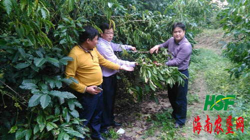 海南農(nóng)墾網(wǎng)1月5日訊 昨天下午,海墾茶業(yè)集團(tuán)黨委書(shū)記、董事長(zhǎng)蔡錦源,總經(jīng)理吳海江到陽(yáng)江農(nóng)場(chǎng)對(duì)接咖啡產(chǎn)業(yè)發(fā)展事宜,雙方一致認(rèn)為以組建海墾咖啡公司為平臺(tái),共同創(chuàng)造海墾咖啡產(chǎn)業(yè)新格局。上圖為蔡錦源(左二),吳海江(右一)到咖啡基地察看咖啡長(zhǎng)勢(shì)。(付謹(jǐn)盛 陸和)