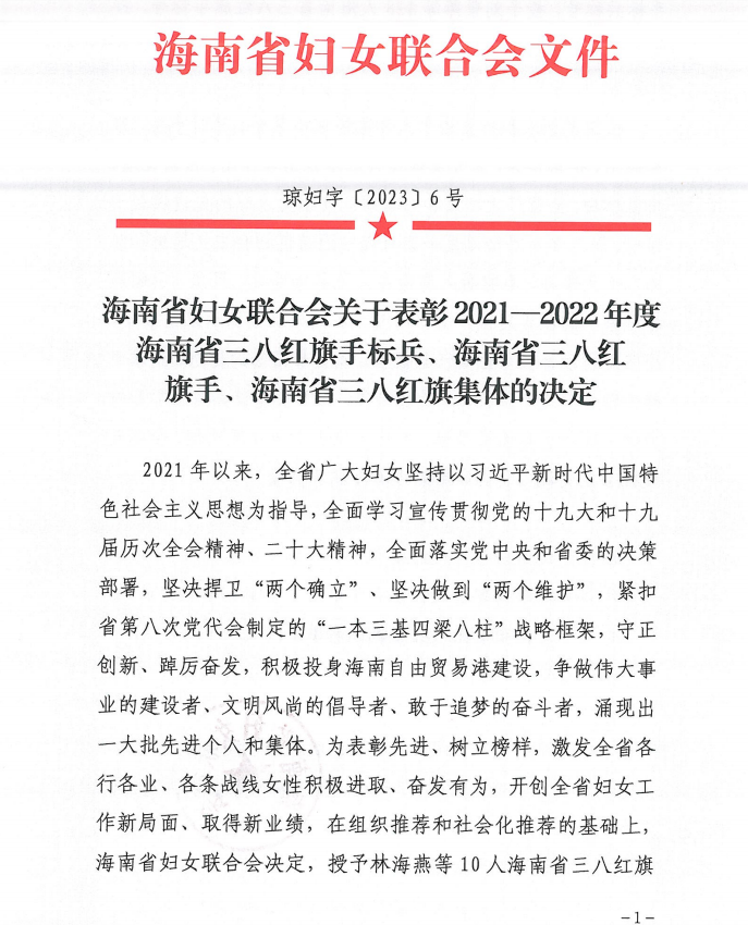 喜報!海墾熱作集團財務(wù)部榮獲2021-2022年度海南省“三八紅旗集體”